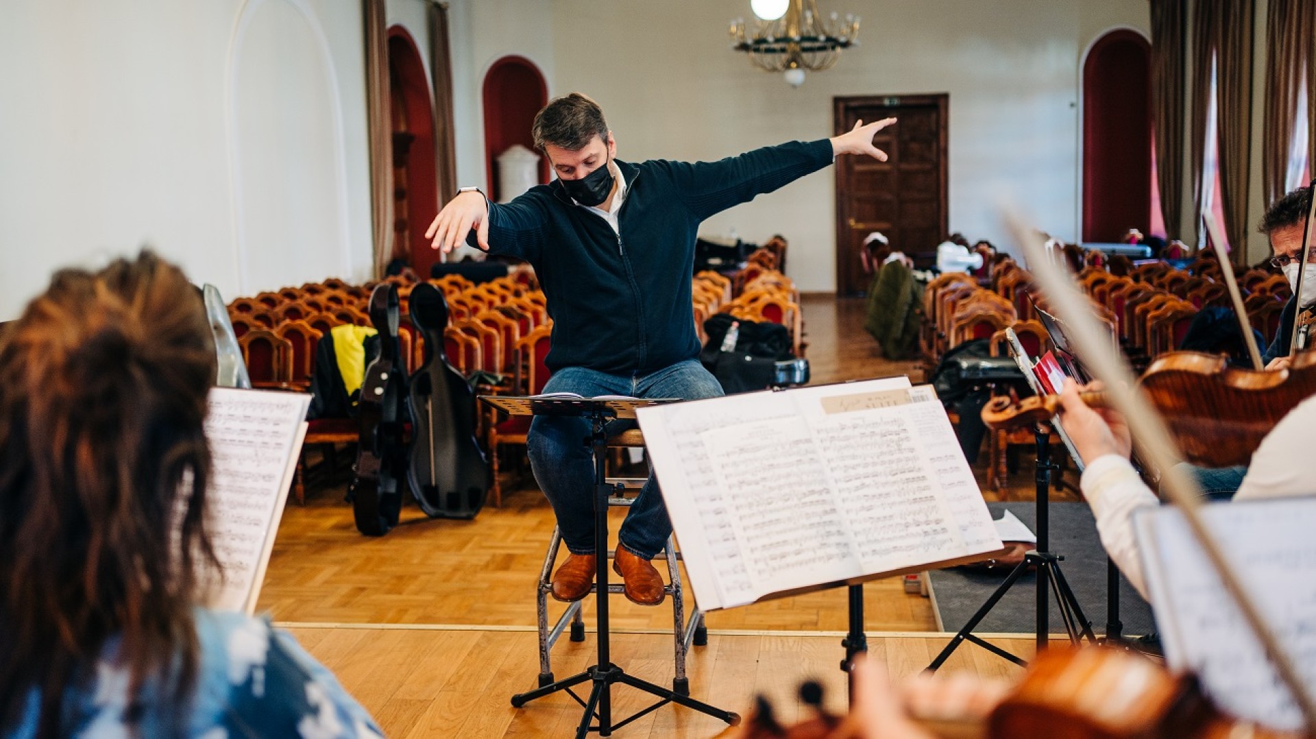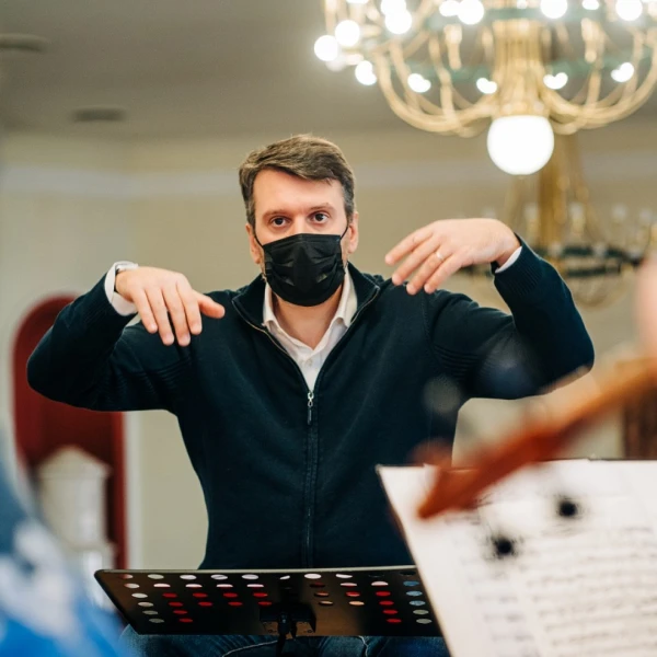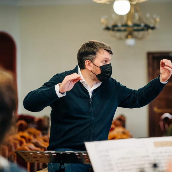 Concert rehearsal with conductor, Mathieu Herzog